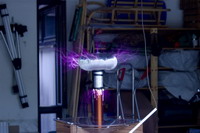 Noch mehr Blitze gegen einen näher positionierten geerdeten Toroid, daher nun deutlich intensiver. |